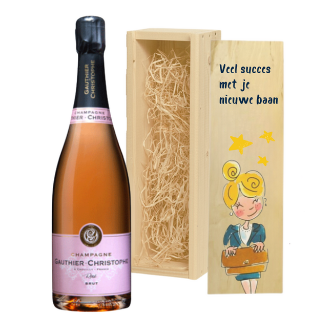 Gepersonaliseerde kist met Gauthier Christophe Champagne voor een Nieuwe Baan