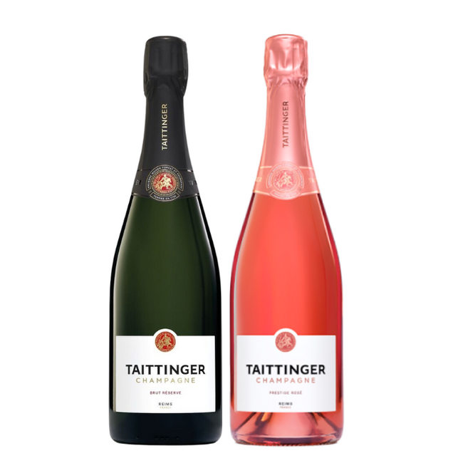 Ontdek de elegante wereld van Taittinger met deze exclusieve combi set. Deze set combineert de frisse Taittinger Brut Réserve met de verfijnde Rosé, en biedt een perfecte balans tussen finesse, frisheid en fruit.