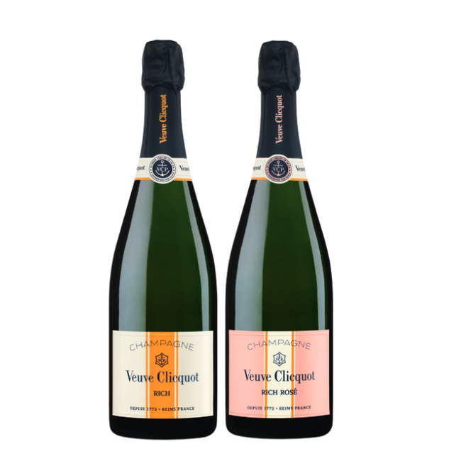 Ontdek een speelse en moderne champagne beleving met deze Veuve Clicquot Rich & Rich Rosé combi set. Deze set bevat twee expressieve champagnes die speciaal zijn ontwikkeld om te serveren met ijs of in cocktails.
